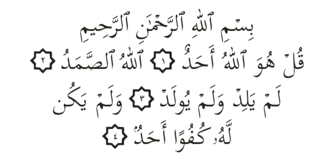Qul huwallahu ahad. Allahus-samad. Lam yalid wa lam yuulad. Wa lam yakul lahuu kufuwan ahad